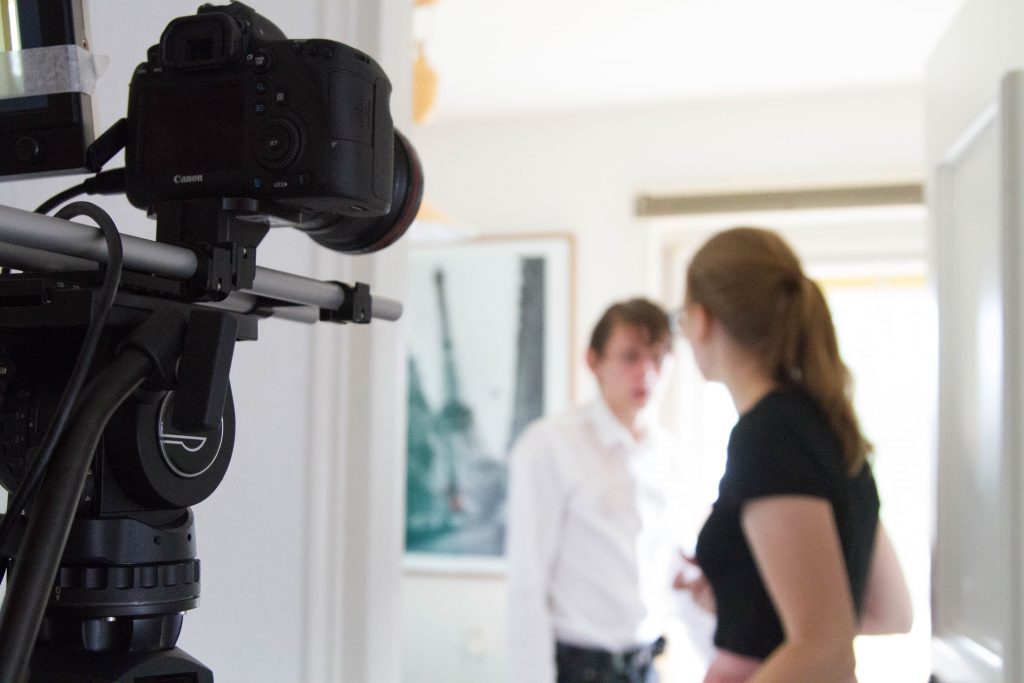 “We ended up shooting the 9th version of the script. Of course during shooting we still changed some things and in editing we even threw out the structure of the script and changed it. A good example is that the script was written as a fall movie, but we ended up filming it in spring. The first shooting day it was 30 degrees so we couldn’t exactly believably make it look like it was fall . Around the 6th version of the script, the director started with the storyboard. This was then used by our storyboard artist to create the final storyboard. The storyboard was then used on set so the DOP’s knew exactly what to do. The storyboard artist was Emma-Lee Snell and the DOP’s were Rowena Golob and Iris Dreesen. Working with two DOP’s was a choice of the director, to emphasize on the difference between present and past. Rowena filmed the present scenes which were mostly static shots. Iris then filmed the past scenes which were mostly handheld shots.”