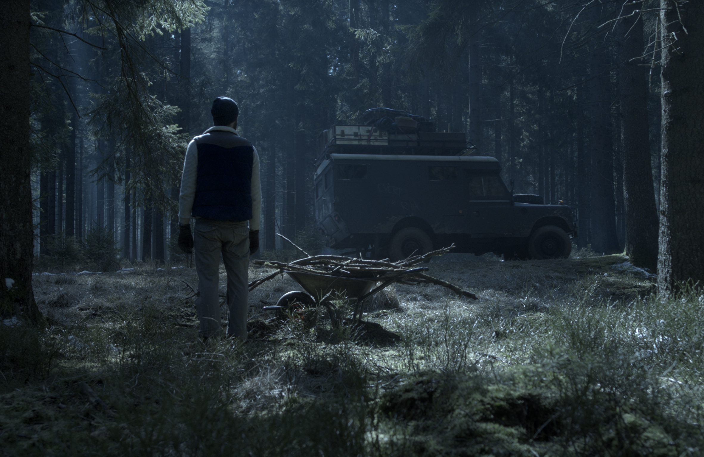 "We hadden vooraf bepaald dat we een donkere, grauwe look voor de film wilden. Dus daar hoort dan geen zonlicht bij. Maar wat bleek: de eerste ochtend van de eerste draaidag was het meteen raak: felle zon, die prachtig door de bomen scheen. We besloten dat we dat niet volledig konden wegwerken en we hebben dus maar gedraaid met die zon. Dat leverde prachtige shots op voor de opening van de film. Maar daarna ging de zon al gauw weg en kregen we al gauw de look die we aanvankelijk zochten. Uiteraard is dit eigenlijk een ramp voor de continuïteit, maar in de kleurcorrectie achteraf kun je veel doen. Dat kost veel tijd en het is echt een bijzonder vak apart, maar op die manier kun je er in ieder geval voor zorgen dat het de doorsnee kijker helemaal niet op zal vallen dat er eigenlijk een heel grote verandering in licht heeft plaatsgevonden.